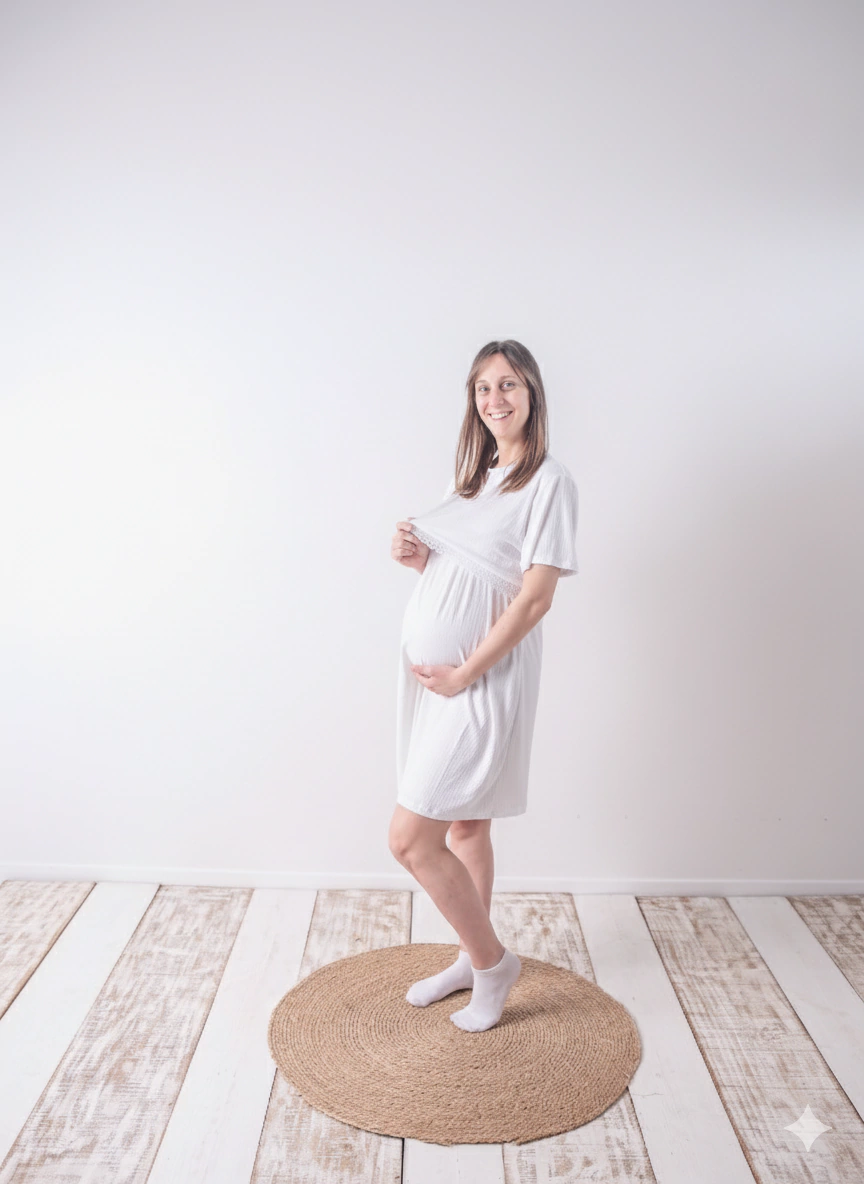 Los detalles de puntillas en este camison lo son todo!! Super delicado y femenino, ideal para que te sientas hermosa y tranquila en esta hermosa etapa del embarazo y maternidad. Este pijama es una prenda versátil: podés usarlo desde el embarazo y continuar disfrutándolo cuando tengas a tu bebé, facilitando la lactancia con total comodidad.